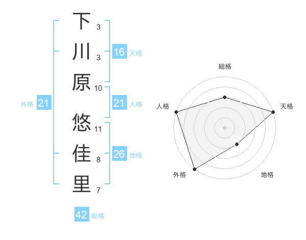 下川原 悠佳里さんを姓名の画数から五運を鑑定