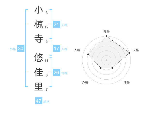 小椋寺 悠佳里さんを姓名の画数から五運を鑑定
