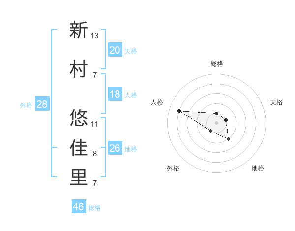 新村 悠佳里さんの外格は28画の1点