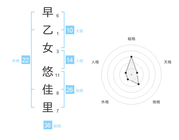 早乙女 悠佳里さんを姓名の画数から五運を鑑定