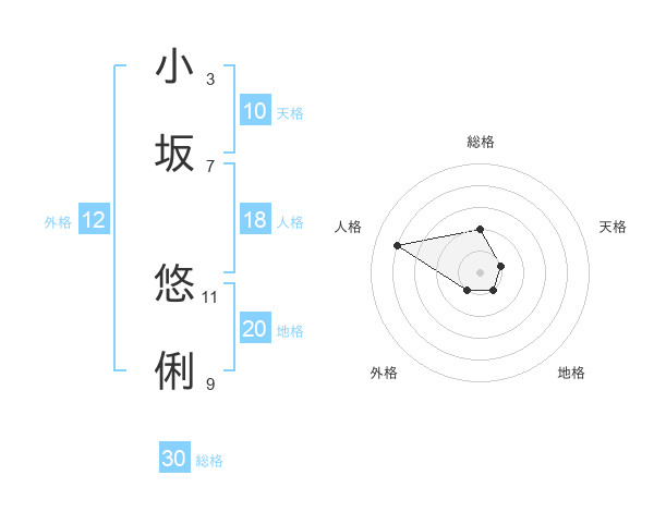 小坂 悠俐さんを姓名の画数から五運を鑑定