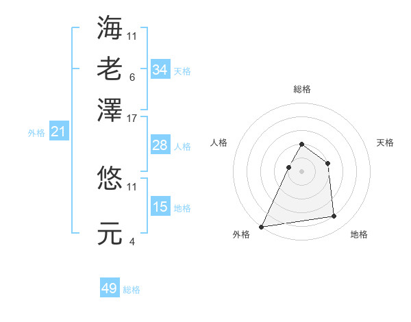 海老澤 悠元さんを姓名の画数から五運を鑑定