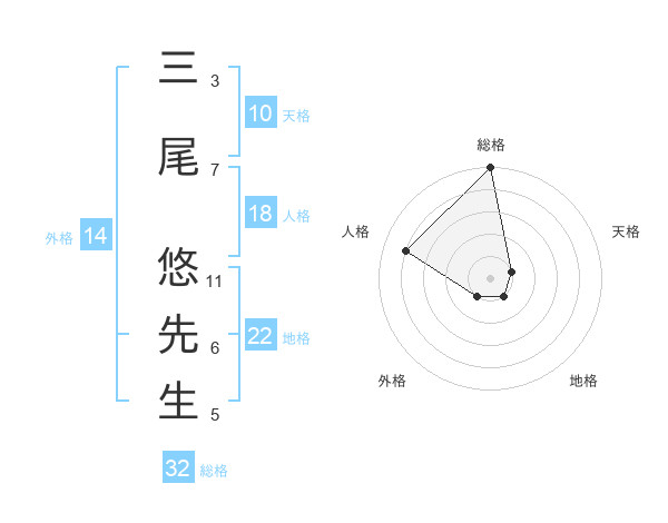 三尾 悠先生さんを姓名の画数から五運を鑑定