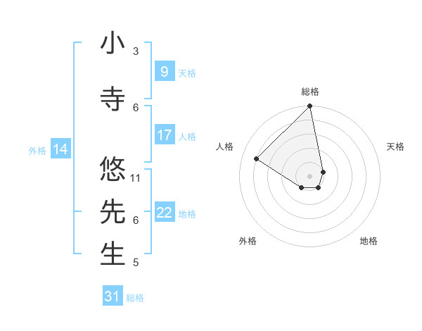 小寺 悠先生さんを姓名の画数から五運を鑑定