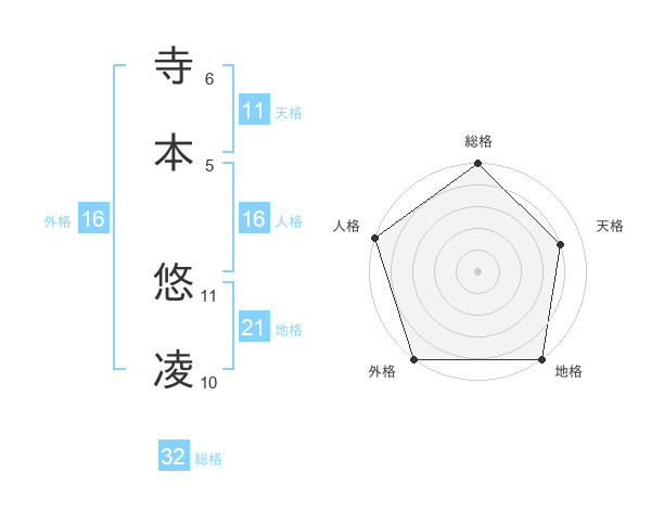 寺本 悠凌さんの総格は32画の5点!