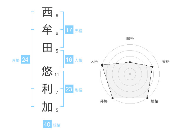 西牟田 悠利加さんを姓名の画数から五運を鑑定