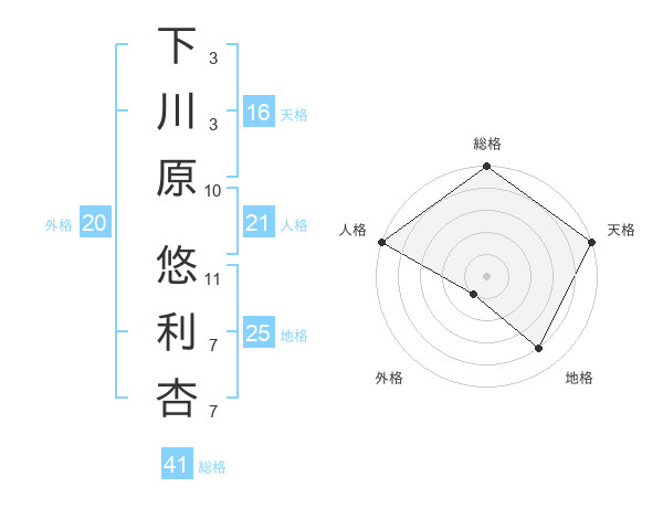 下川原 悠利杏さんを姓名の画数から五運を鑑定