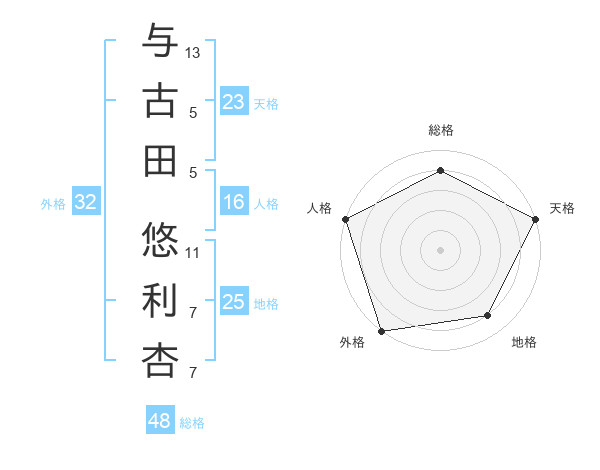与古田 悠利杏さんの天格は23画の5点!