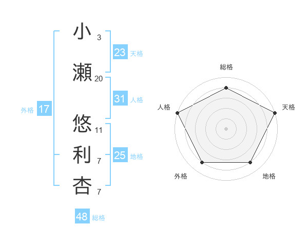 小瀬 悠利杏さんの人格は31画の5点!