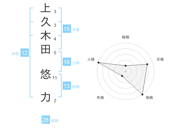 上久木田 悠力さんを姓名の画数から五運を鑑定
