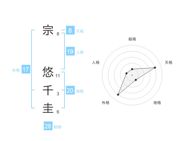 宗 悠千圭さんの天格は8画の4点!