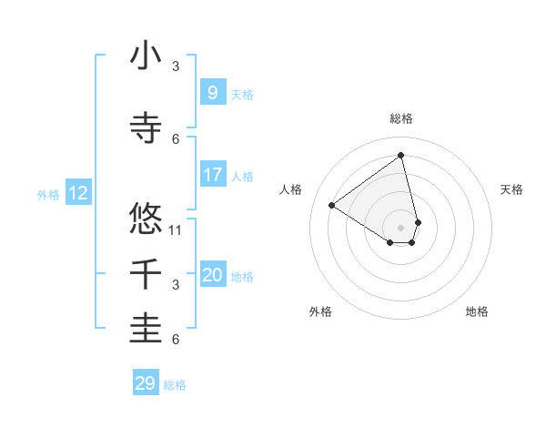 小寺 悠千圭さんの総格は29画の4点!