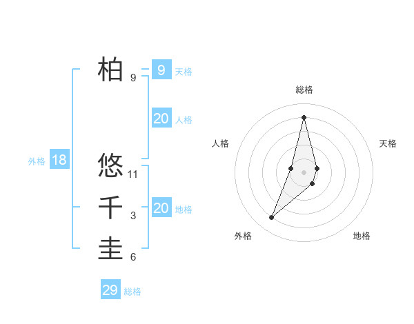 柏 悠千圭さんの総格は29画の4点!