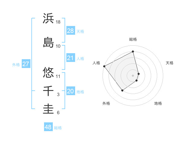 浜島 悠千圭さんを姓名の画数から五運を鑑定