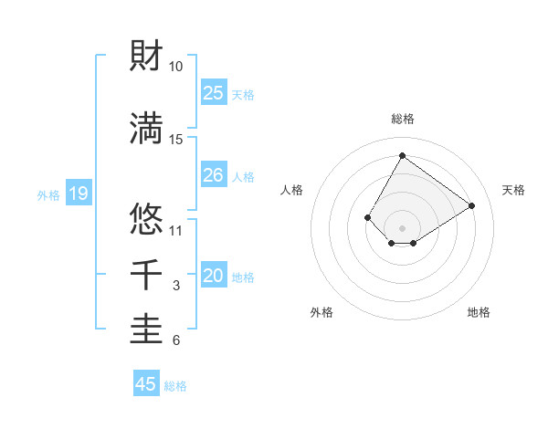 財満 悠千圭さんを姓名の画数から五運を鑑定