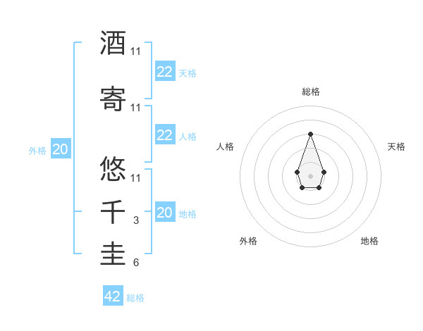 酒寄 悠千圭さんを姓名の画数から五運を鑑定