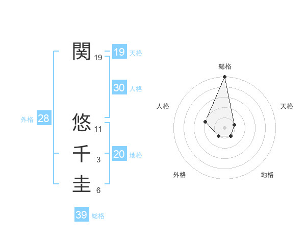 関 悠千圭さんを姓名の画数から五運を鑑定
