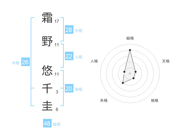 霜野 悠千圭さんの総格は48画の4点