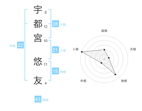 宇都宮 悠友さんを姓名の画数から五運を鑑定
