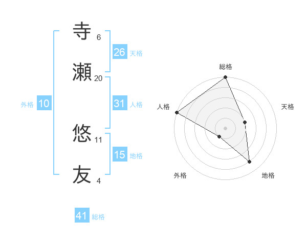 寺瀬 悠友さんの天格は26画の2点!