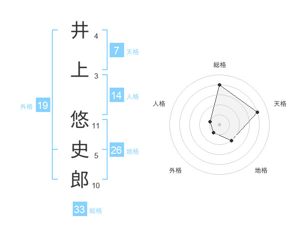 井上 悠史郎さんを姓名の画数から五運を鑑定