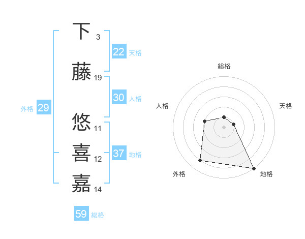 下藤 悠喜嘉さんを姓名の画数から五運を鑑定