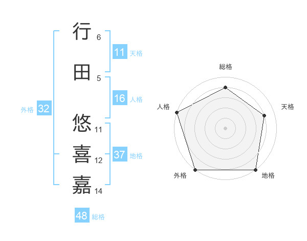 行田 悠喜嘉さんを姓名の画数から五運を鑑定
