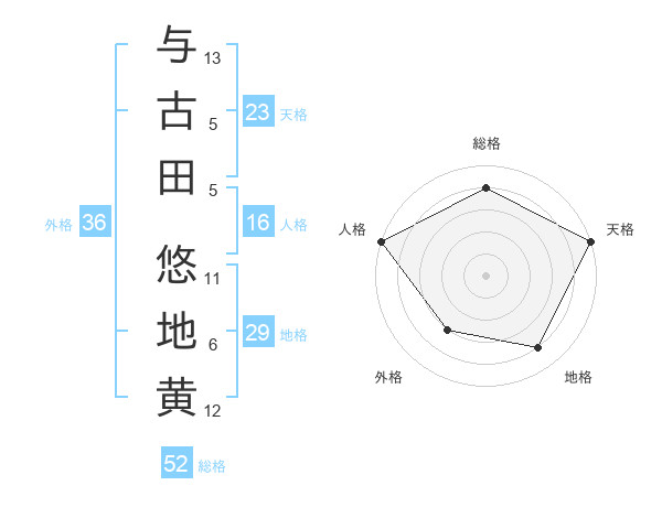 与古田 悠地黄さんを姓名の画数から五運を鑑定