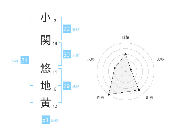 小関 悠地黄さんを姓名の画数から五運を鑑定