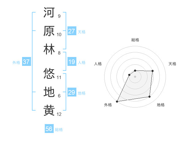 河原林 悠地黄さんを姓名の画数から五運を鑑定