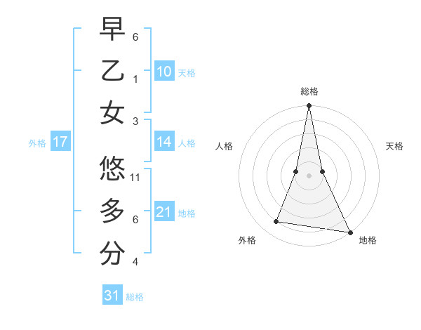 早乙女 悠多分さんを姓名の画数から五運を鑑定