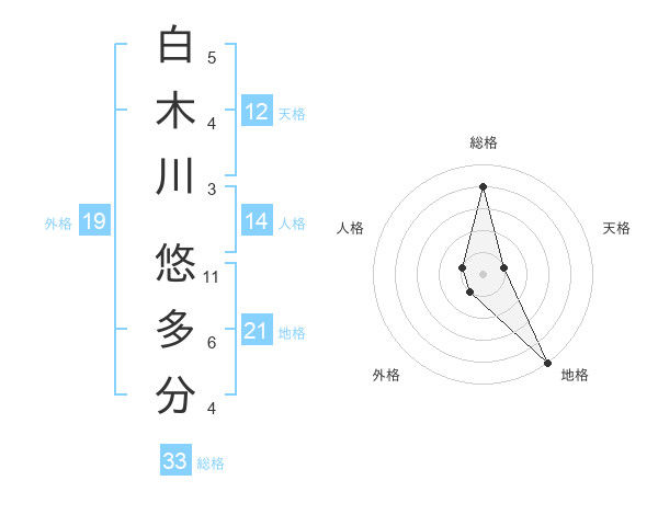 白木川 悠多分さんの総格は33画の4点