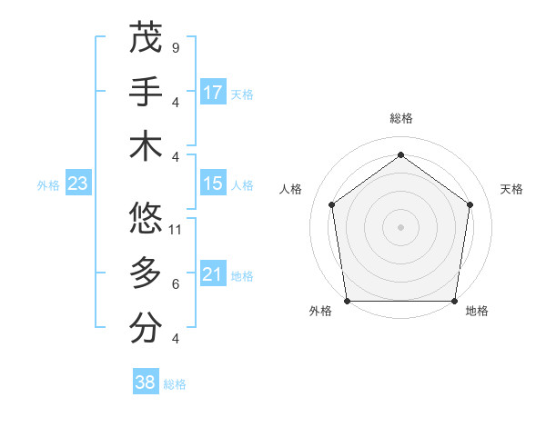 茂手木 悠多分さんを姓名の画数から五運を鑑定