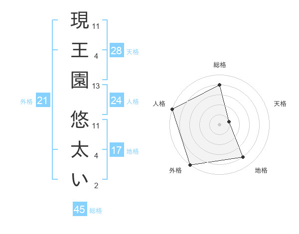 現王園 悠太いさんを姓名の画数から五運を鑑定