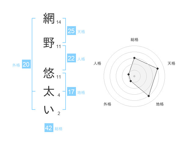 網野 悠太いさんを姓名の画数から五運を鑑定