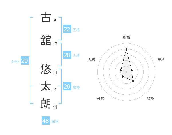 古舘 悠太朗さんを姓名の画数から五運を鑑定