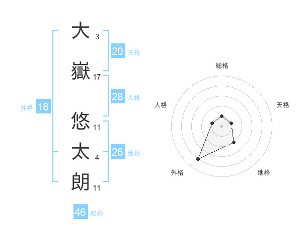 大嶽 悠太朗さんの総格は46画の1点!