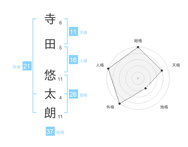 寺田 悠太朗さんの総格は37画の5点!