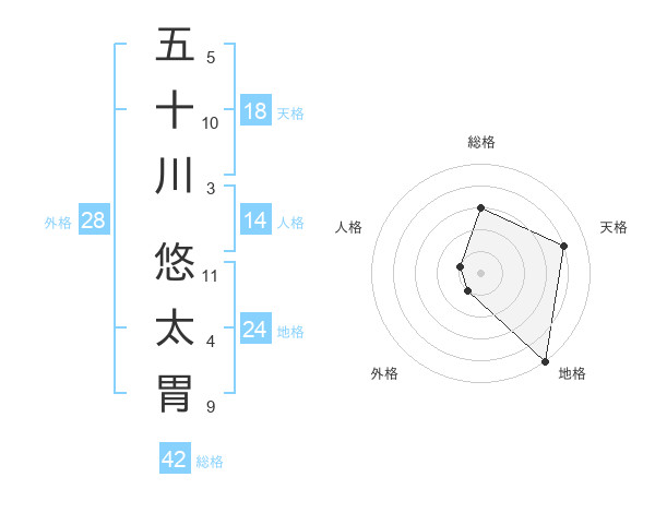 五十川 悠太胃さんを姓名の画数から五運を鑑定