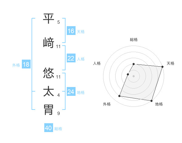 平﨑 悠太胃さんの総格は40画の2点!