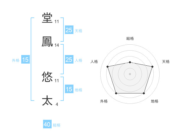 堂鳳 悠太さんの天格は25画の4点!