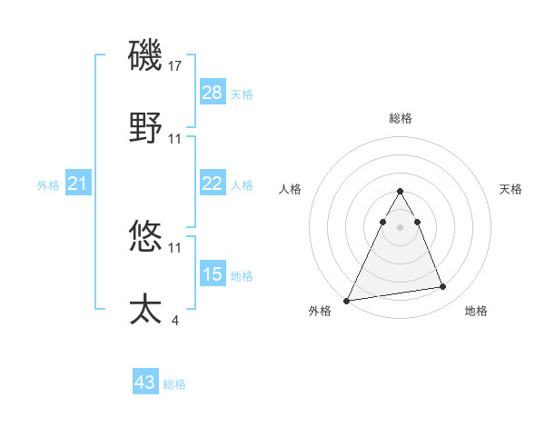 磯野 悠太さんを姓名の画数から五運を鑑定