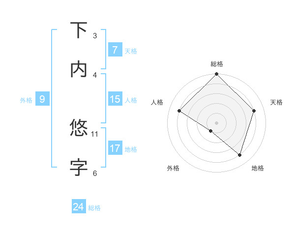 下内 悠字さんの総格は24画の5点!