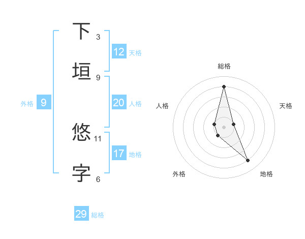 下垣 悠字さんを姓名の画数から五運を鑑定