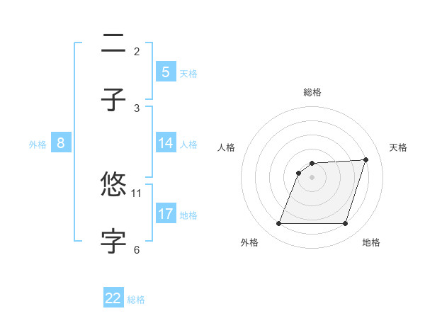 二子 悠字さんの天格は5画の4点!