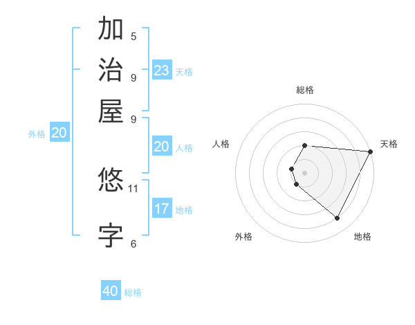 加治屋 悠字さんを姓名の画数から五運を鑑定