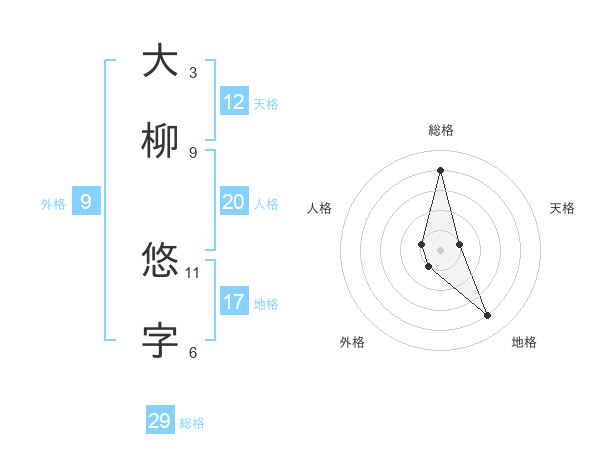 大柳 悠字さんを姓名の画数から五運を鑑定