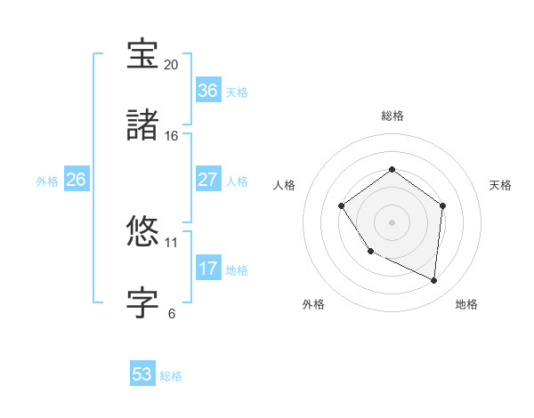 宝諸 悠字さんを姓名の画数から五運を鑑定