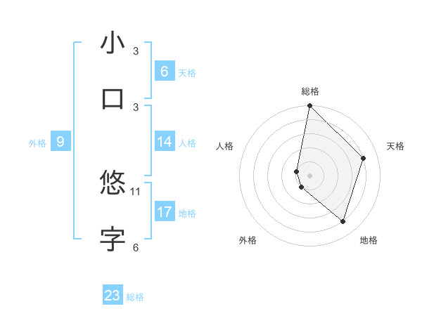 小口 悠字さんの総格は23画の5点!