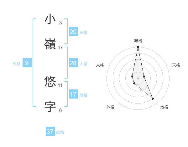 小嶺 悠字さんの総格は37画の5点!